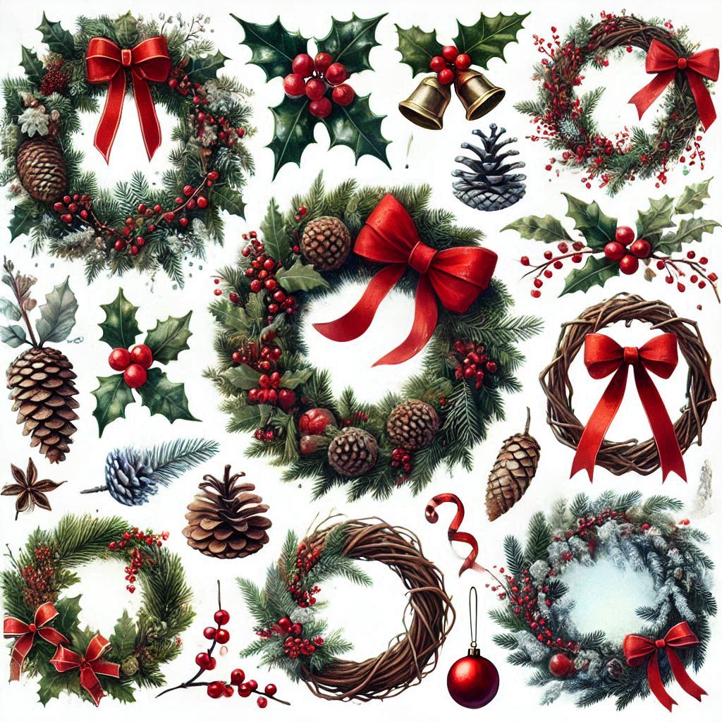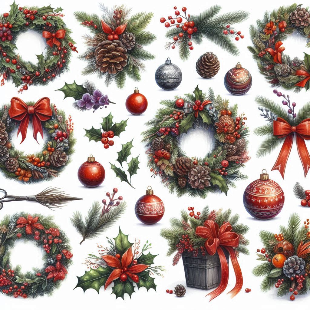 - 장식용 소재 (리본, 솔방울, 크리스마스 공, 인공 꽃)
