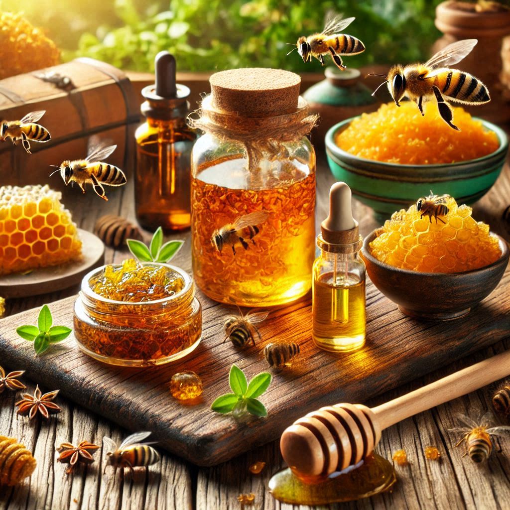프로폴리스는 상처 치유를 촉진하고 감염을 예방하는 데 유용합니다. 또한 피부 세포의 재생을 도와 여드름, 건선과 같은 피부 질환의 증상을 완화합니다. 최근에는 프로폴리스 성분이 함유된 스킨케어 제품도 많이 출시되고 있습니다.