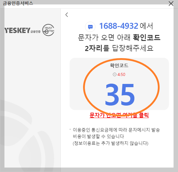 휴대폰 문자인증을 누르면, 아래처럼 숫자가 나오지요.