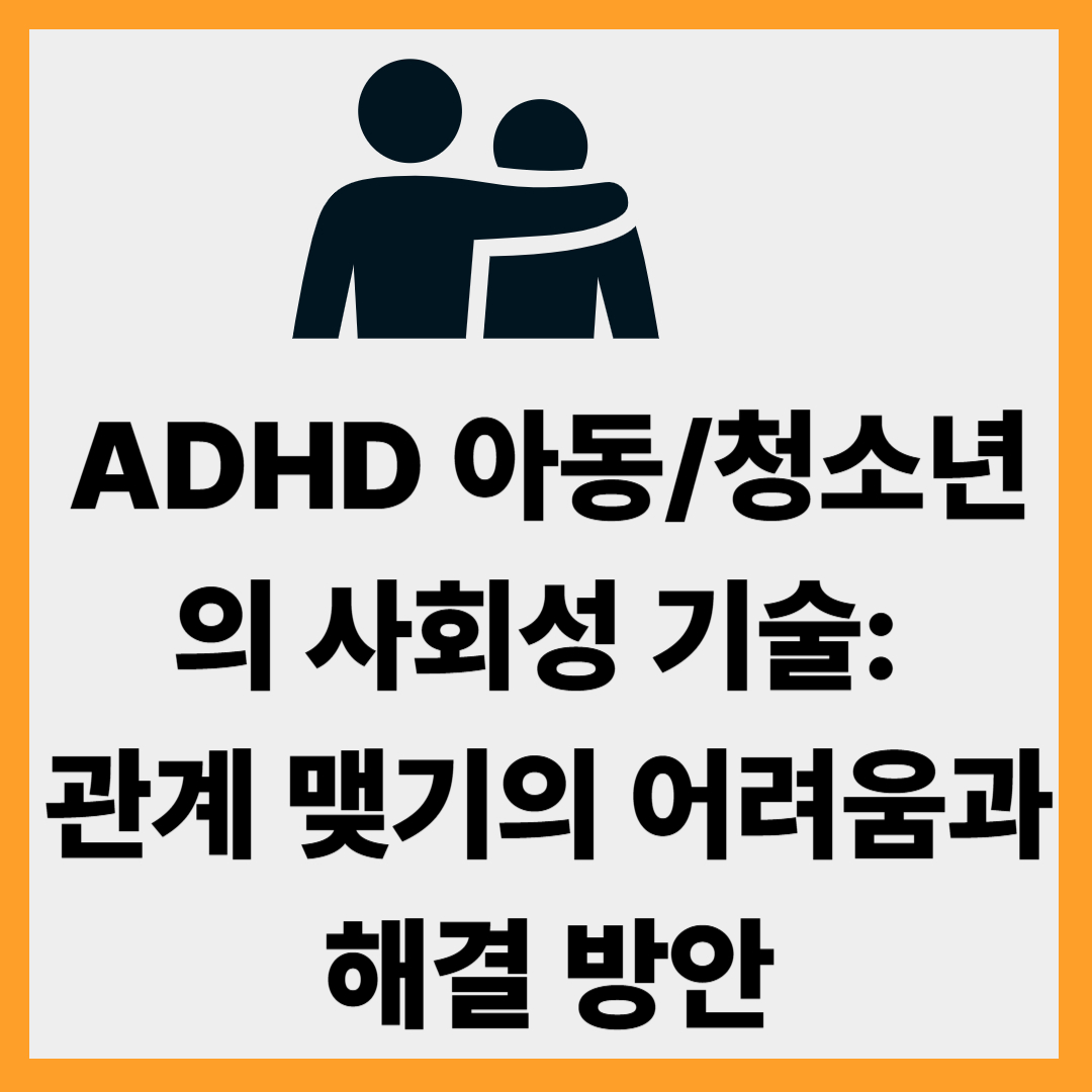 ADHD(주의력결핍 과잉행동장애)를 가진 아동과 청소년는 사회적 어려움에 직면할 수 있습니다. 그래서 친구 사귀기, 또래와의 상호작용, 감정 조절 등은 이들에게 단순한 기술이 아니라 지속적인 도전이 될 수 있으며, 이를 해결하기 위한 전략들이 절실히 필요합니다.